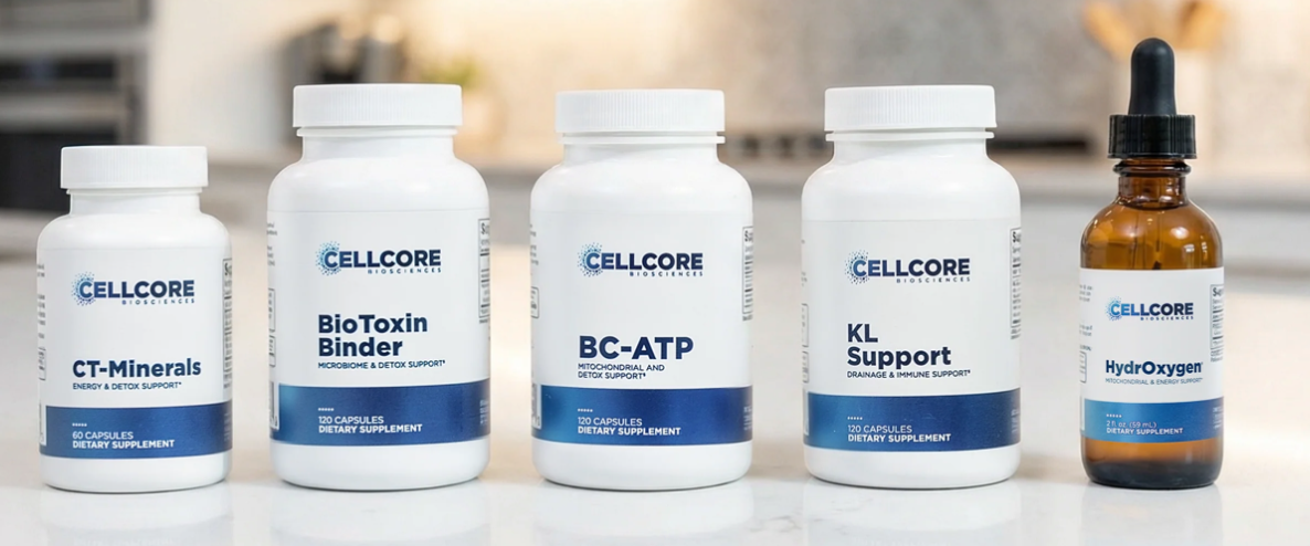 CellCore Biosciences makes supplements focused on detoxification and gut health. Their products use carbon technology — a proprietary blend of humic and fulvic acids — to help the body remove toxins, support drainage pathways, and restore gut balance. The line includes binders that grab onto heavy metals and environmental toxins, parasite-cleansing formulas, and products that support the liver, kidneys, and lymphatic system. CellCore is popular in functional and integrative medicine practices that take a root-cause approach to chronic illness and overall wellness.